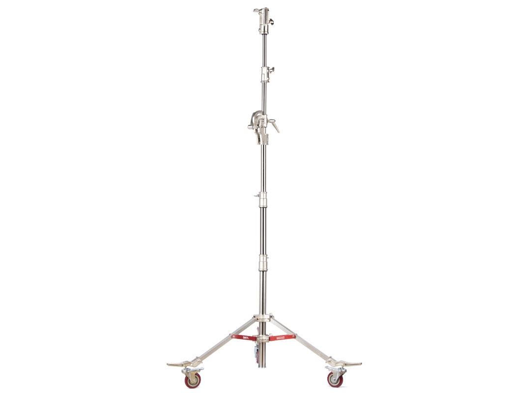 SWIT MAGIC4420 прочный телескопический штатив на колесах с подвижной штангой. Имеет 5 секций, рабочую высоту от 175 до 440 см и максимальную нагрузку 20 кг. Для установки светильника имеется гнездовой разъем Junior Pin 1-1/8” (29 мм) и выдвижной штыревой разъем Baby Pin 5/8” (16 мм). Предназначен для использования в киноиндустрии.