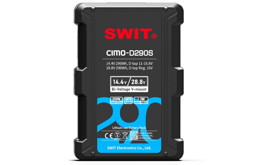 SWIT CIMO-D290S интеллектуальная батарея с V-образным креплением, которая может переключаться с 14,4В на 28,8В, прикоснувшись к магнитной наклейке. Предназначена для камер которым требуется источник питания напряжением 28,8В (RED V-Raptor XL, ARRI ALEXA LF/65 или BMD URSA CINE). Просто приклейте магнитную наклейку в определенном месте на пластине V-mount. При подключении аккумулятора CIMO-D290S он автоматически подает напряжение 28,8 В (22-33,6 В). Это эффективно предотвращает угрозу безопасности, вызванную неправильным использованием напряжения.