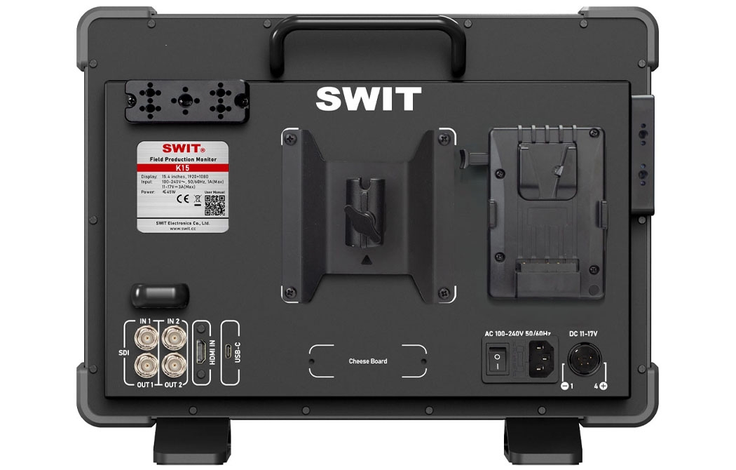 Монитор стандартно комплектуется двумя площадками (Cheese boards) для крепления аксессуаров и беспроводных видеосендеров. Площадки можно закрепить в шести различных положениях на задней и боковых панелях. Кроме этого, в комплект поставки K15 входит адаптер VESA C-stand, что делает его невероятно удобным для видеосъёмочных групп, позволяя им устанавливать монитор на стойку C-stand для мониторинга в различных условиях съёмки.
