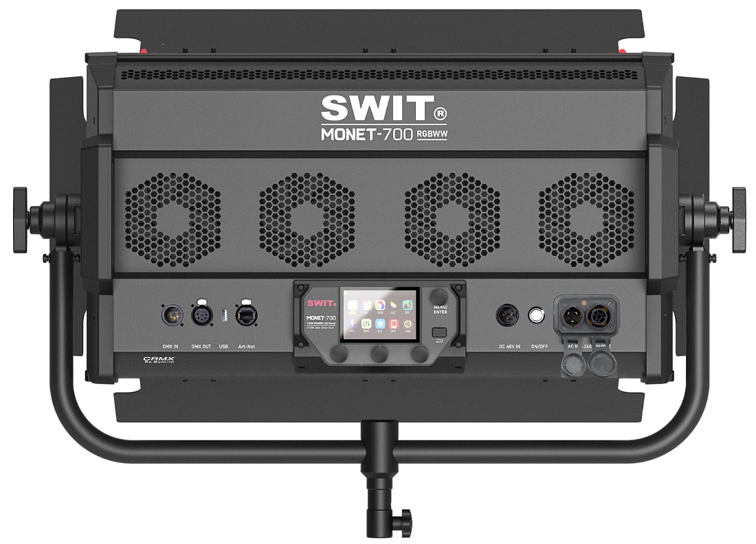 SWIT MONET-700 светодиодная RGBWW панель для студий вещания, виртуальных студий, живых выступлений и съемочных площадок. Обладает мягкой и высокой яркостью (20000Lux на 1 метре), расширенными возможностями управления, а также универсальным дополнительным креплением и источником питания для профессиональной настройки.