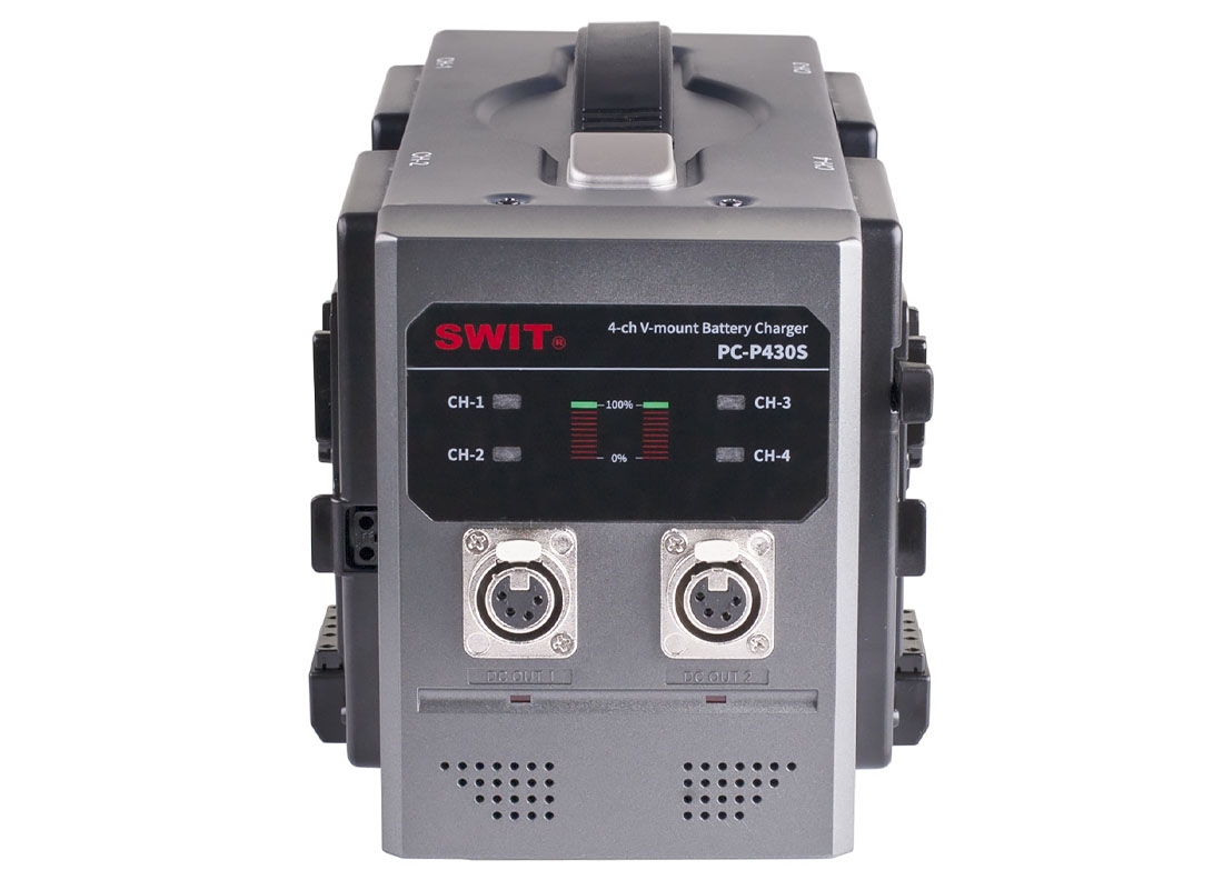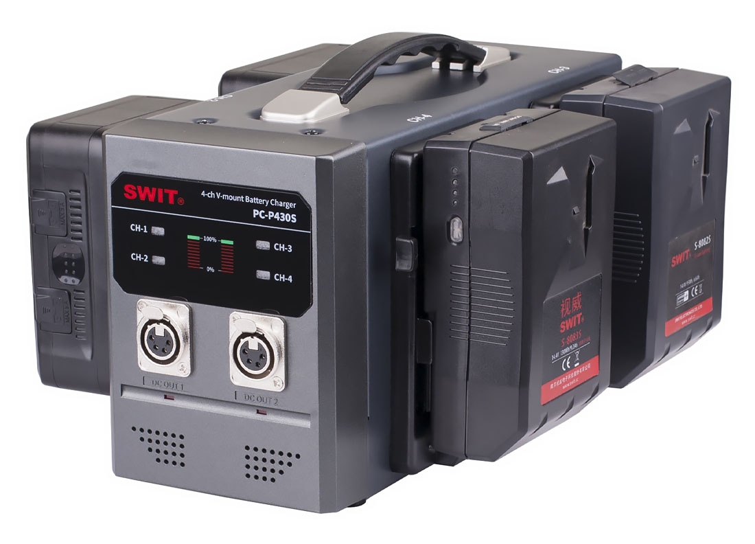 SWIT PC-P430S зарядное устройство для аккумуляторных батарей типа V-mount (SONY). При максимальной потребляемой мощности 276Вт, PC-P430S одновременно заряжает четыре аккумулятора. Напряжение заряда для каждого канала 15-20В, ток заряда до 3А. Li-ion элементы заряжаются в два этапа. Первый этап - быстрый заряд с максимально возможным напряжением, при этом батарея заряжается на максимальной скорости. Когда напряжение батареи достигает заданного значения, зарядное устройство переходит ко второму этапу заряда. Изменяется только ток заряда, напряжение остается неизменным.