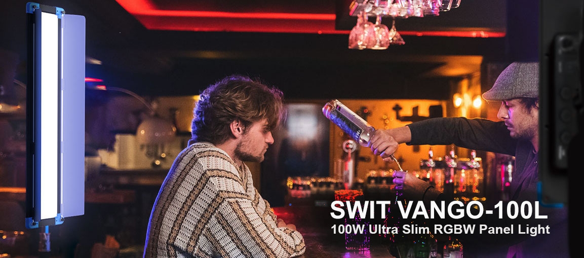 SWIT VANGO-100L тонкая удлиненная портативная светодиодная RGBW панель со светоотдачей 1800Lux на 1 метре, эквивалентная обычной интенсивности цветного RGB светильника мощностью 250 Вт. Торцевое расположение светодиодов и волноводы с отражением 90°, позволили сделать панель тощиной всего 21мм и обеспечить мягкий рассеянный свет.